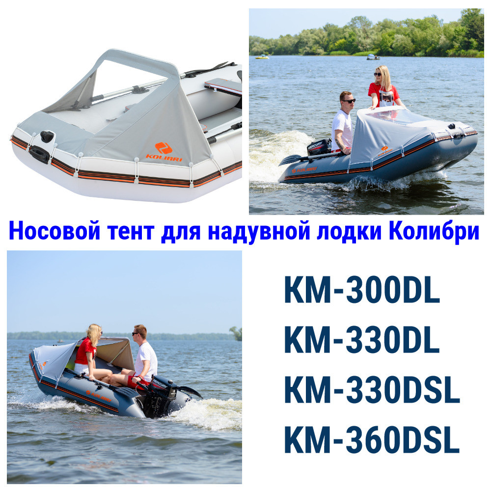 Носовий тент з оглядовим вікном для надувного човна Колібрі прекрасно гармонує з надувним човном КМ-300DL, KM-330DL, КМ-330DSL, KM-360DSL і робить її схожою на катер.
